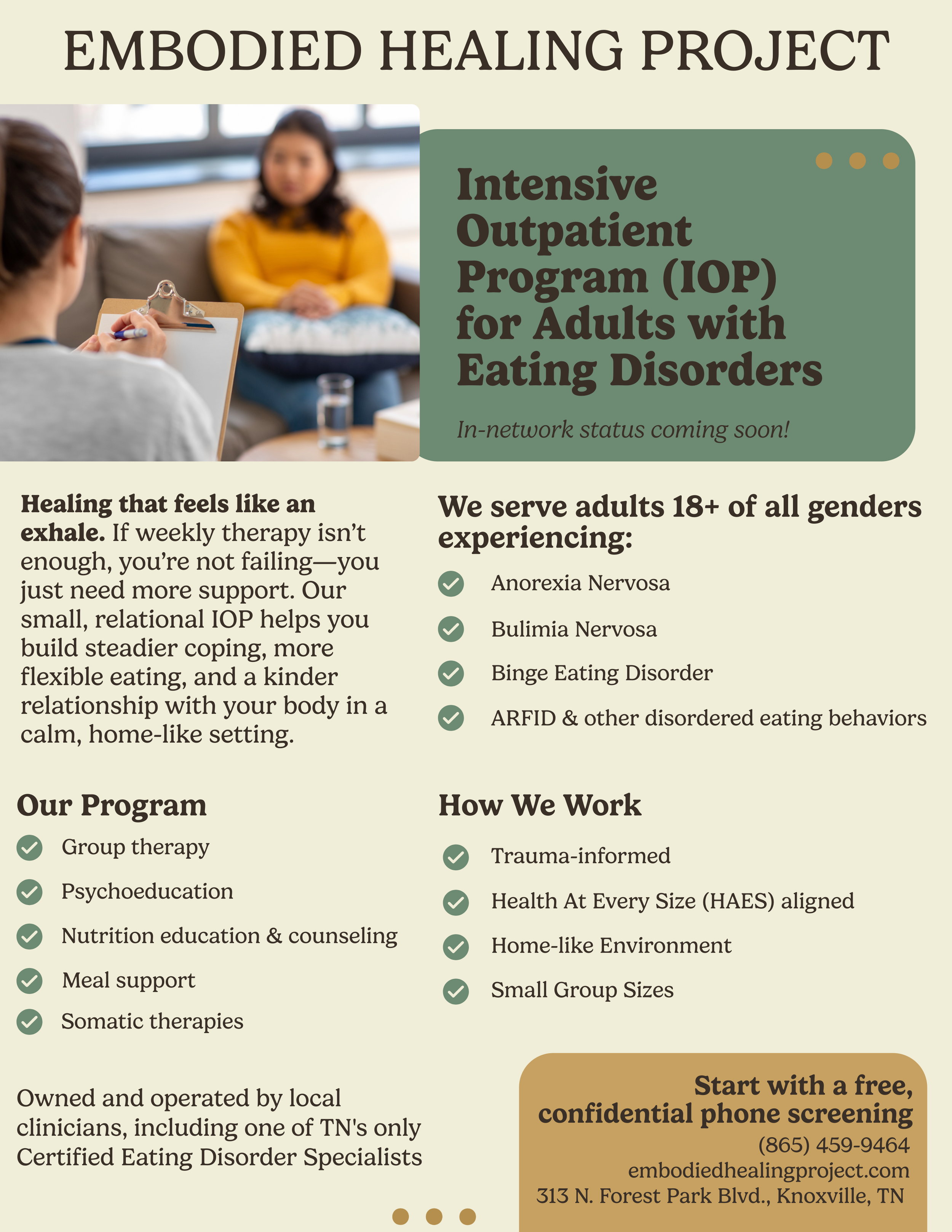 In October of 2025, Lindsey and Allison began an eating disorder focused intensive outpatient program for women, aptly named Embodied Healing Project. To learn more about this project, click here!